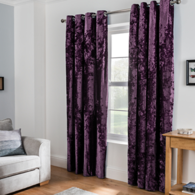 Embossed Crushed Velvet Eyelet Curtains Prune Home