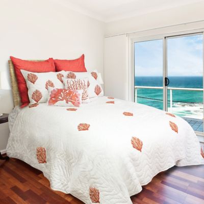 Oceana Embroidered Handmade Quilt In White Coral Bed