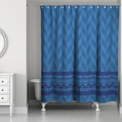 Alternating Pattern With Chevron Shower Curtain In Navy