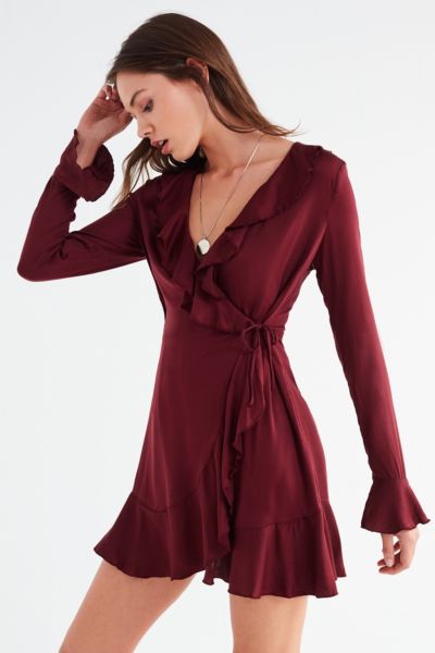 Uo Long Sleeve Ruffle Wrap Dress Urban Outfitters