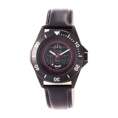 Disney Mickey Mouse Mens Black Leather Strap Watch