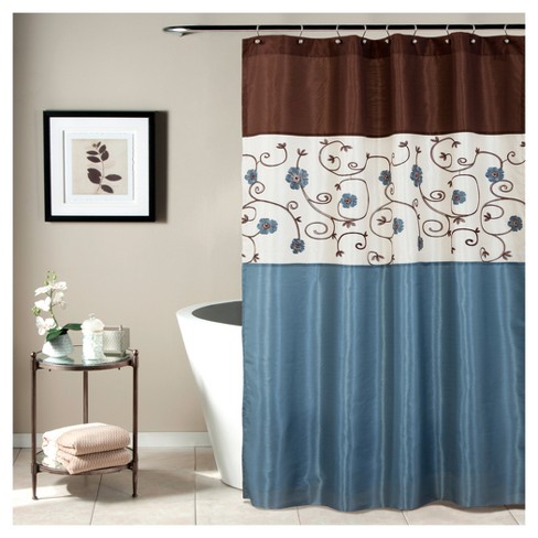 Target Home Blue Green Brown Floral Fabric Shower Curtain